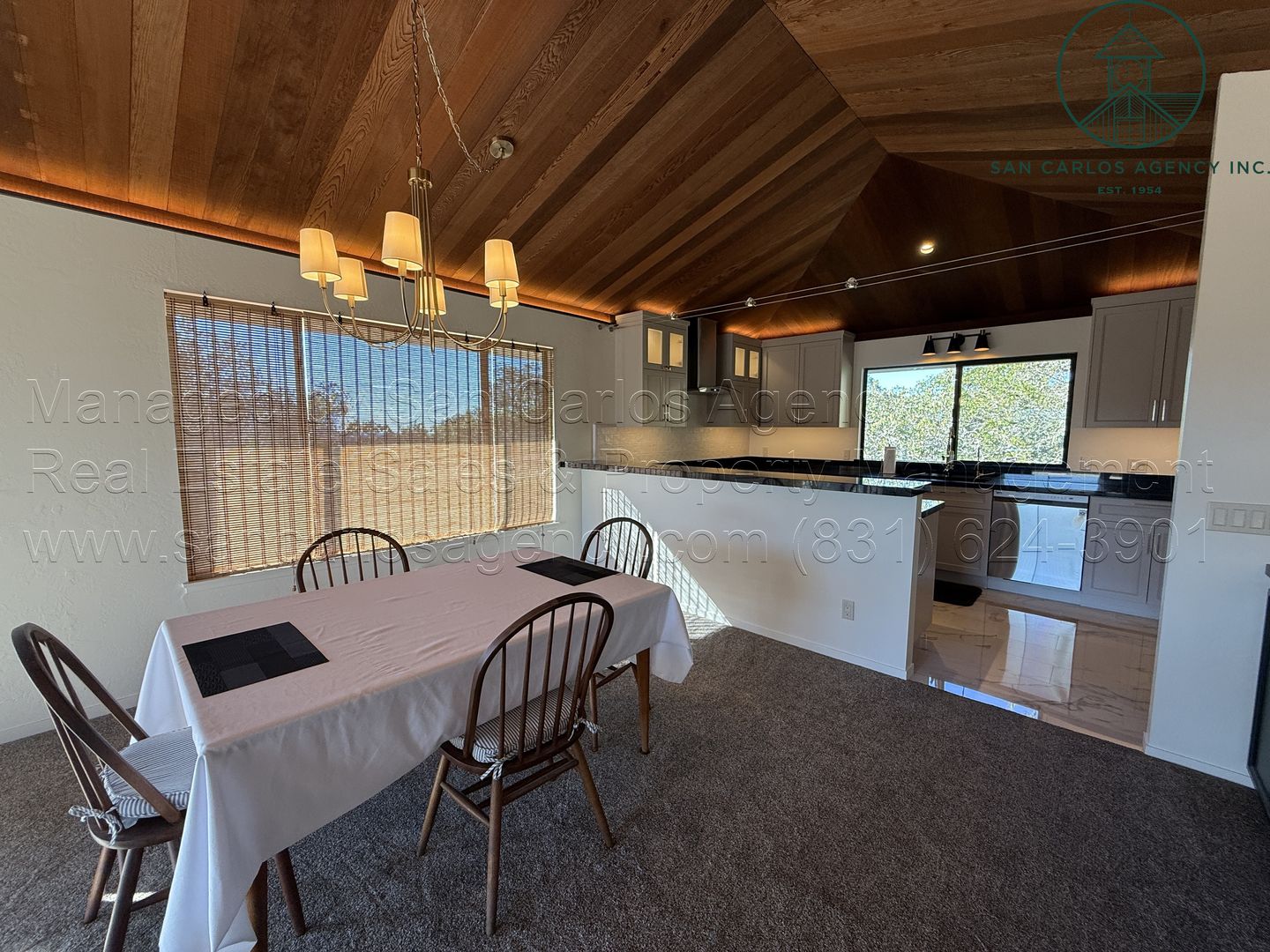 (WOEHM) San Carlos Agency, Inc. offers this perfectly maintained and meticulously updated three bedroom, two bath, single level home sited on nearly an acre with both mountain and Carmel Valley views beyond. Enter into a spacious foyer entry and straight through to the high, open, natural wood ceiling of the living/dining room, which exits to the large, sunny deck - perfect for indoor-outdoor living and entertaining. The kitchen is absolutely flawless with stainless steel appliances [refrigerator with ice maker/water dispenser, electric range with vent hood, under-counter microwave, dishwasher, and water softener (left as courtesy to tenant)], modern lighting, eat-in bar area, large sink, and an abundance of cabinetry. The primary bedroom is at the end of the hall with tons of closet space, large window for plenty of light, and perfectly updated en-suite bath (walk-in shower). The two guest bedrooms are off the hall and share the updated guest bath (double sinks, tub/shower). The attached garage has plenty of room for two cars and the brand new stackable washer/dryer (left as a courtesy to tenant). Also off the entry is a very spacious office/bonus room with excellent views and beautiful natural wood finishes. The home has new carpet throughout and plenty of other modern amenities and refreshments. Tenant pays all standard utilities except Landlord will pay for a gardener. Pet negotiable. No Smoking. Contact San Carlos Agency at (831) 624-3901 or rentals@sancarlosagency.com to schedule a showing. Visit www.sancarlosagency.com or www.carmelrentalproperties.com.