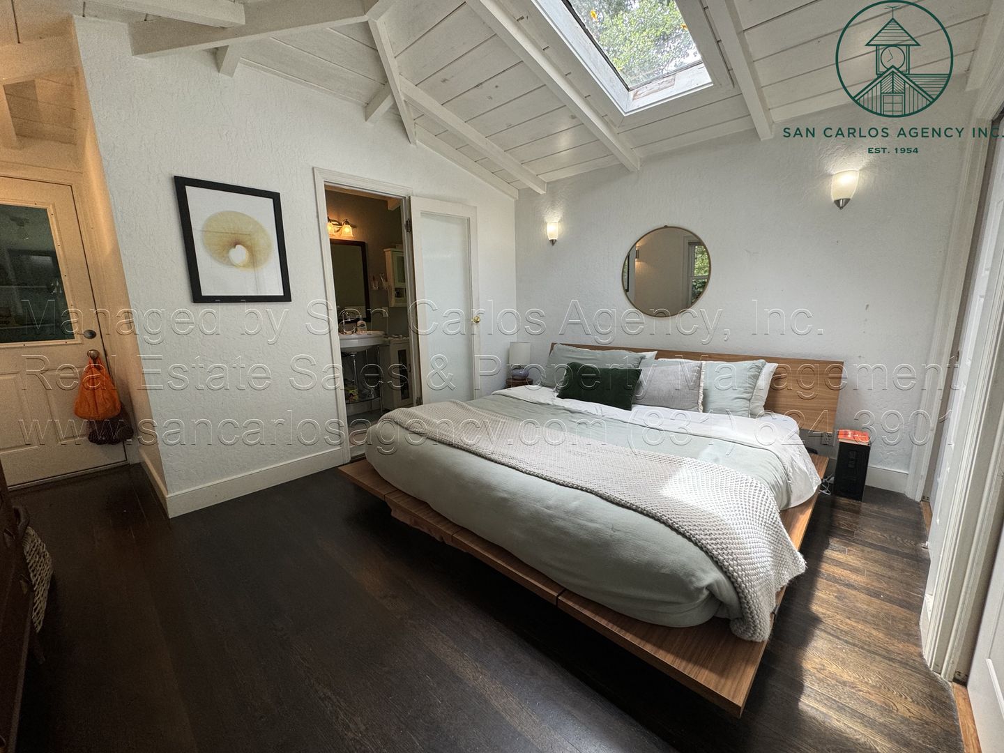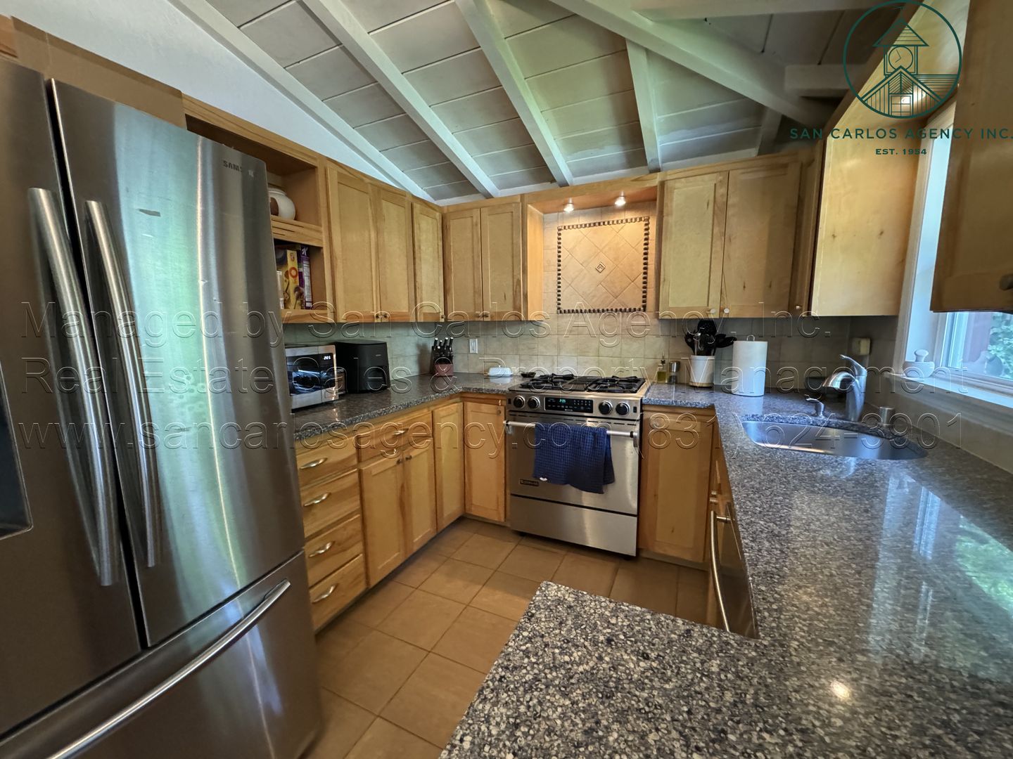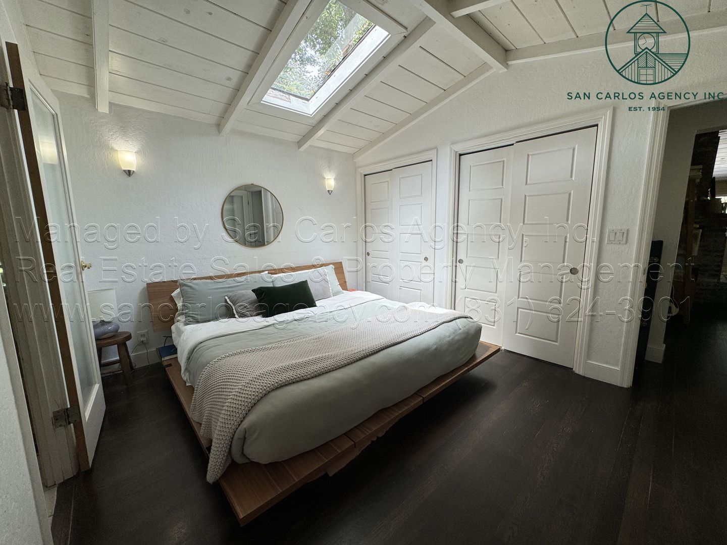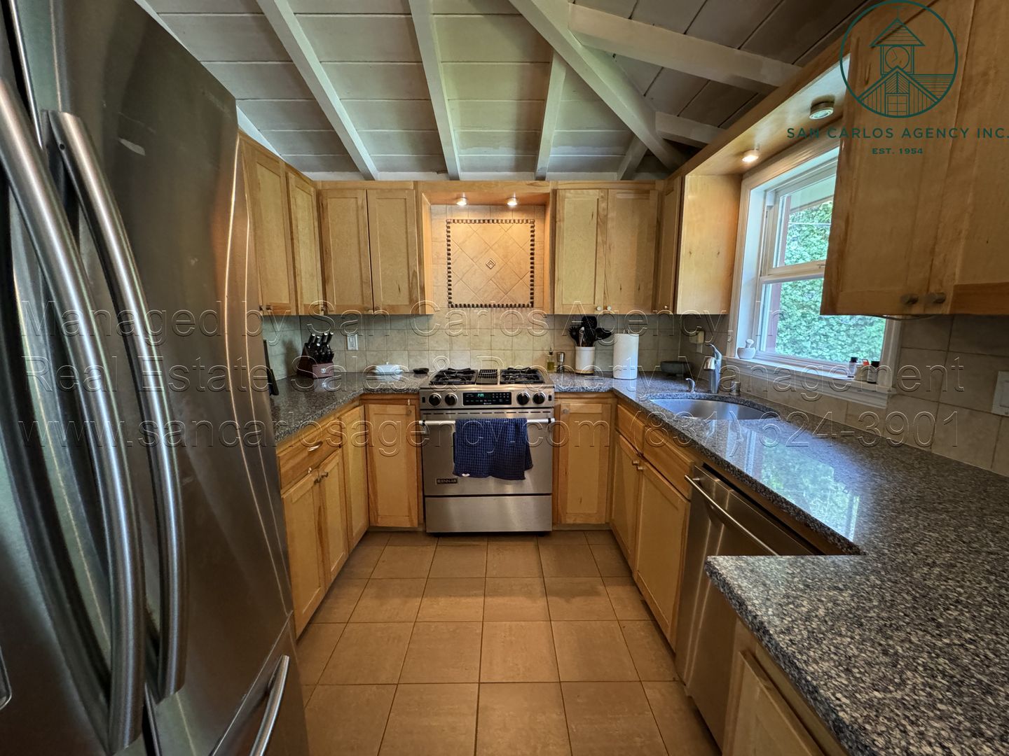 (MUIRT) San Carlos Agency, Inc. offers this cozy and charming, unfurnished, two bed (with additional small bonus room), two bath Carmel Woods bungalow. Located in the top-rated Carmel Unified School District, the single-level home boasts a spacious and inviting living room with vaulted ceilings, skylights, a large fireplace (not to be used by tenant, for ambiance only), hardwood floors, and an adjacent dining area. Off the primary bedroom is a bonus room, separate laundry room (washer/dryer left as a courtesy to tenant), an en-suite bath (shower), multiple closets, and French doors that lead to one of the patio and deck areas. The kitchen is off the dining room and features stainless steel appliances (refrigerator with automatic ice/water dispenser, gas range, dishwasher, and disposal). Off the kitchen/dining is the primary yard area with combination turf/deck/concrete patio and outdoor fire pit with gas assist and a BBQ/smoker (left as a courtesy to tenant). The second bath (tub/shower) is off the guest room. Recent upgrades include a newer roof, single car detached garage, repaved driveway, double pane windows, electrical panel and wiring, cedar shingle siding/stone accents, retaining walls, privacy fences, and tankless water heater. Tenant pays all standard utilities and will maintain the yard/grounds. Pet negotiable. No smoking. Contact San Carlos Agency at (831) 624-3901 or rentals@sancarlosagency.com to schedule a showing. Visit www.SanCarlosAgency.com or www.CarmelRentalProperties.com.