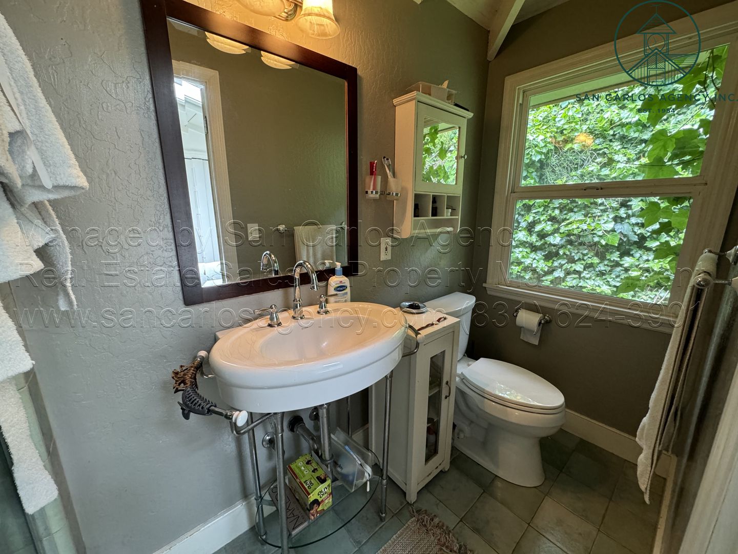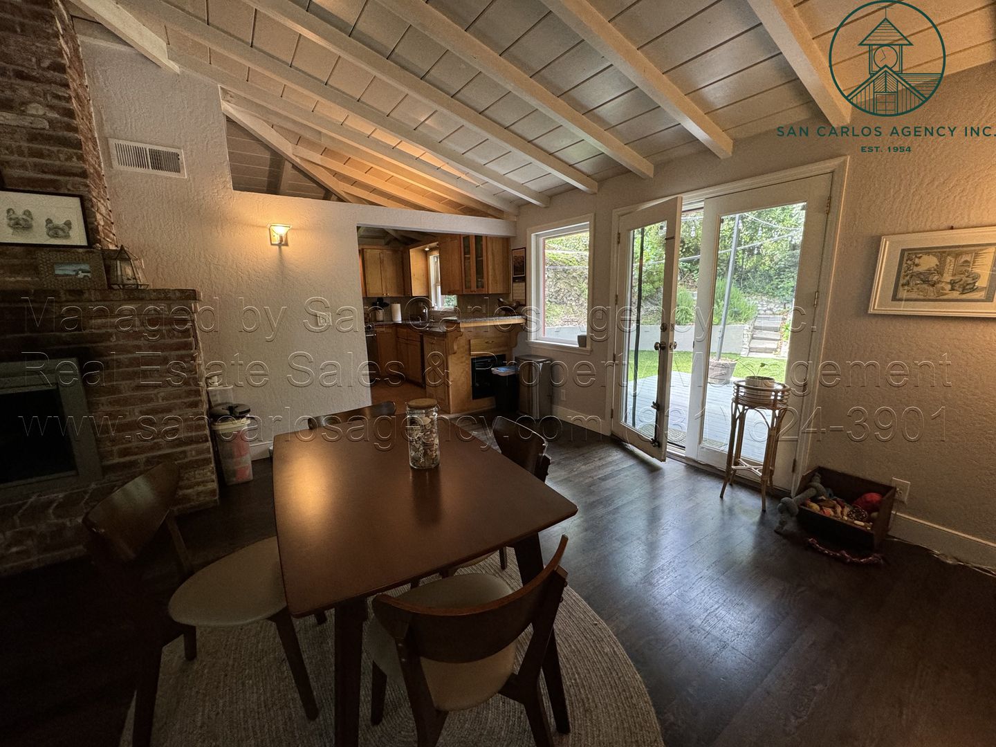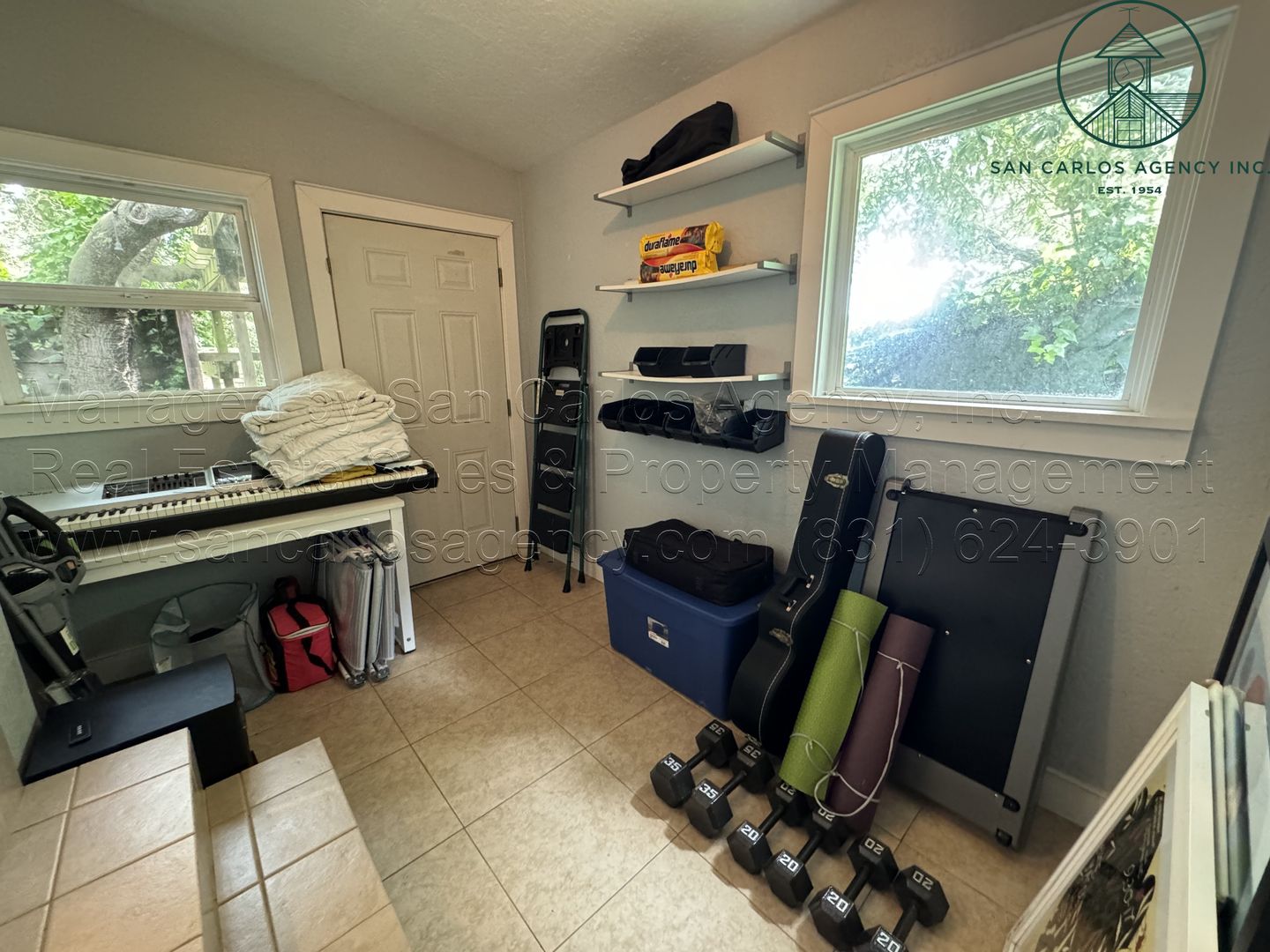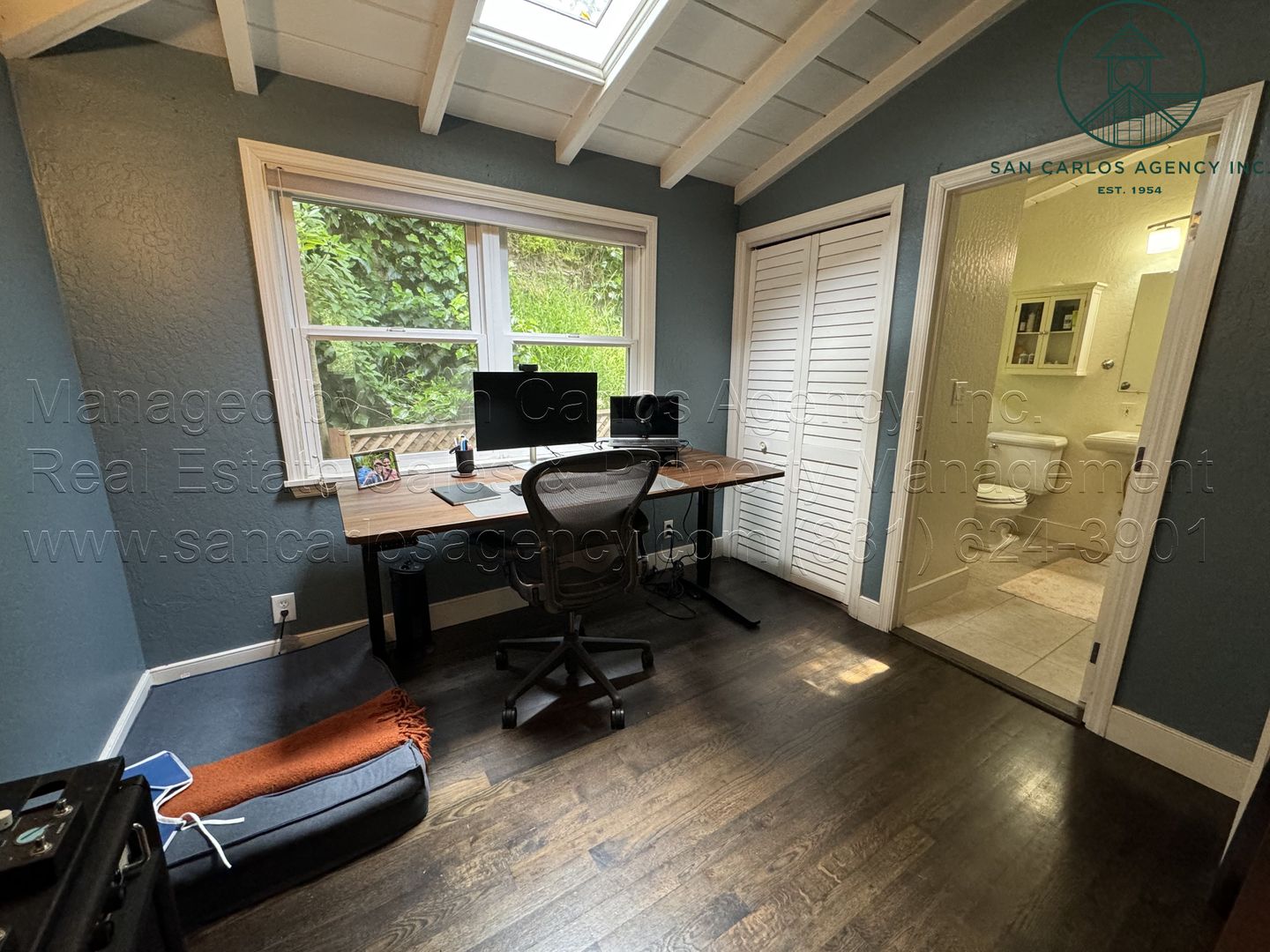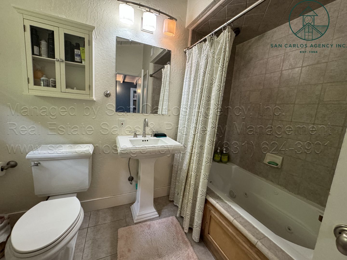 (MUIRT) San Carlos Agency, Inc. offers this cozy and charming, unfurnished, two bed (with additional small bonus room), two bath Carmel Woods bungalow. Located in the top-rated Carmel Unified School District, the single-level home boasts a spacious and inviting living room with vaulted ceilings, skylights, a large fireplace (not to be used by tenant, for ambiance only), hardwood floors, and an adjacent dining area. Off the primary bedroom is a bonus room, separate laundry room (washer/dryer left as a courtesy to tenant), an en-suite bath (shower), multiple closets, and French doors that lead to one of the patio and deck areas. The kitchen is off the dining room and features stainless steel appliances (refrigerator with automatic ice/water dispenser, gas range, dishwasher, and disposal). Off the kitchen/dining is the primary yard area with combination turf/deck/concrete patio and outdoor fire pit with gas assist and a BBQ/smoker (left as a courtesy to tenant). The second bath (tub/shower) is off the guest room. Recent upgrades include a newer roof, single car detached garage, repaved driveway, double pane windows, electrical panel and wiring, cedar shingle siding/stone accents, retaining walls, privacy fences, and tankless water heater. Tenant pays all standard utilities and will maintain the yard/grounds. Pet negotiable. No smoking. Contact San Carlos Agency at (831) 624-3901 or rentals@sancarlosagency.com to schedule a showing. Visit www.SanCarlosAgency.com or www.CarmelRentalProperties.com.