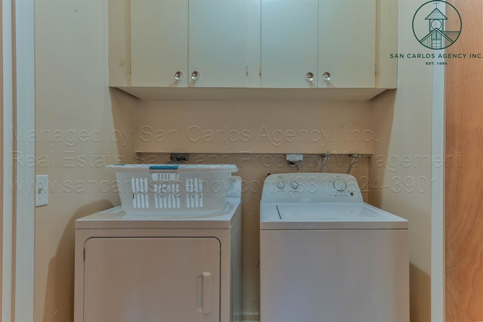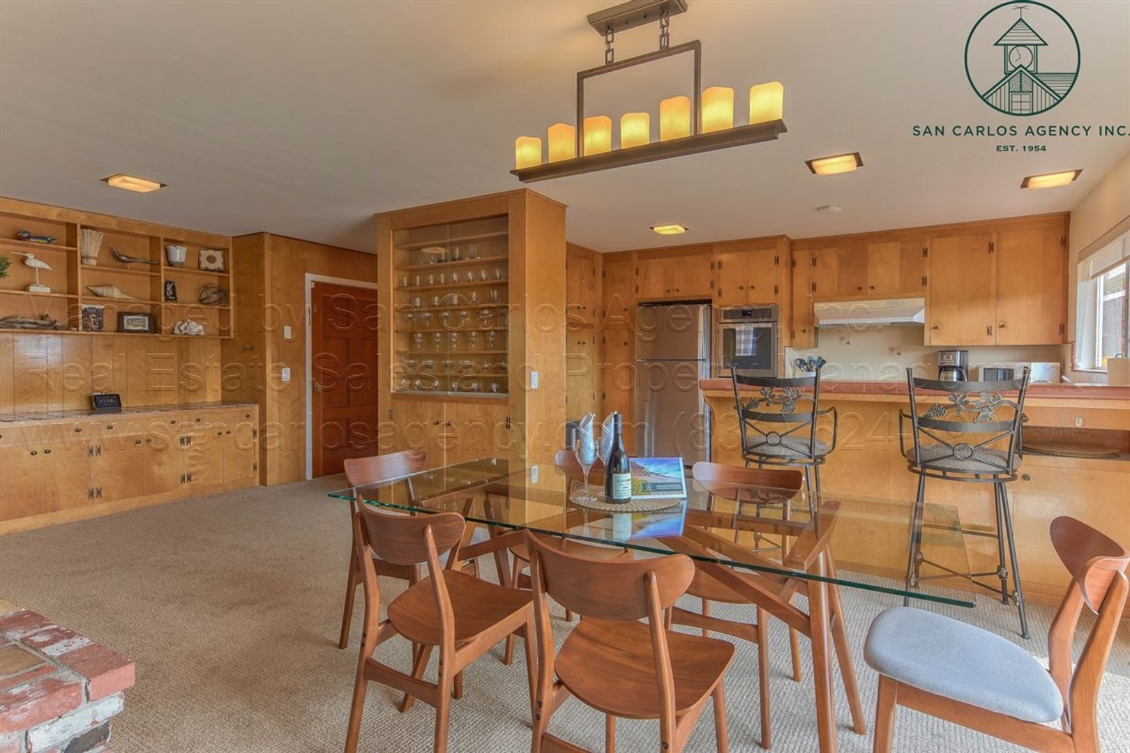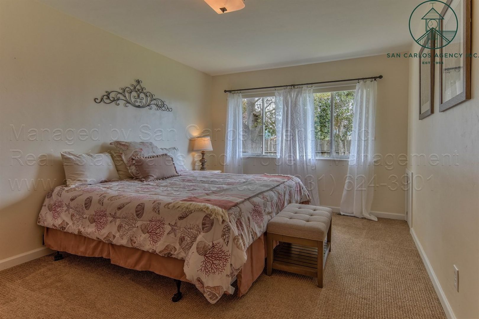 GREET - "Mission Hill" - Delightful ocean and Point Lobos views highlight this single level 2 bedroom (king, twins), 2 bath home located near Mission Ranch. Carpeted living room has open beam ceilings, huge windows with beautiful views, large flat screen television, DVD player, and plenty of seating. Fireplace (wood burning with gas jet starter) opens both to the living room and to the dining room (table seats 6). Dining Room is separated from the kitchen over a service bar. Kitchen has a new induction cook top and double electric wall ovens, microwave, dishwasher, tile counters, and plenty of storage. Sliding door leads to deck and yard area off of dining room. Entry hallway leads to bedrooms: Primary Bedroom with king bed, small seating area, TV, windows looking to side yard, and bath with tub and separate shower. Guest bedroom is at the end of the hall with twin beds. Guest bath (shower stall) and closet with washer/dryer are also located off of the hall. Carpet throughout. Outside features a private front patio with incredible views out to Pt. Lobos (table with seating for 4), and a separate patio in back yard area with table that seats 4. Plenty of off-street parking, as well as a two car garage with parking for one. Wi-Fi. NO PETS. NO SMOKING. PROPERTY CODE: GREET (**NOTE: (1) there is 1 exterior camera attached to a security system mounted above the front door. The system is not monitored, but can be viewed on a screen inside the house. Six to twelve month lease term. Contact San Carlos Agency, Inc. at (831) 624-3901 or rentals@sancarlosagency.com to schedule a showing. Visit www.SanCarlosAgency.com or www.CarmelRentalProperties.com.