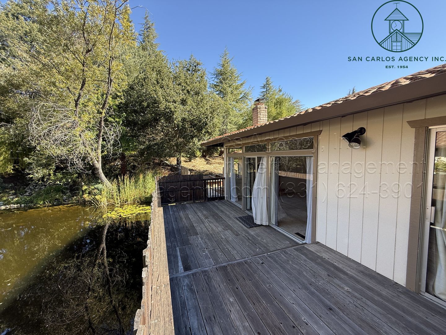 (FERGC) San Carlos Agency, Inc. offers this nicely updated single-level, three bedroom, two bath home, nestled in the heart of Carmel Valley Village overlooking one of the community's serene ponds. Framed by a pleasant mountain backdrop, this property is part of an exclusive community of 18 homes thoughtfully arranged around five tranquil ponds, offering a unique neighborhood charm. The home has some tasteful updates including a new kitchen (large refrigerator with bottom freezer and ice-maker, electric range with built-in microwave hood, dishwasher, large sink, bay window and plenty of cabinetry), living room with fireplace that exits to a large deck overlooking a pond, and an attached single car garage (additional parking in a dedicated spot off the shared driveway). The primary bedroom features an en-suite bath (walk-in shower) while the hall bath offers a tub/shower combination. Washer/dryer left as courtesy to Tenant in hall closet. Tenant pays all standard utilities. No smoking. Small pet negotiable. Contact San Carlos Agency at (831) 624-3901 or rentals@sancarlosagency.com to schedule a showing. Visit www.SanCarlosAgency.com or www.CarmelRentalProperties.com.