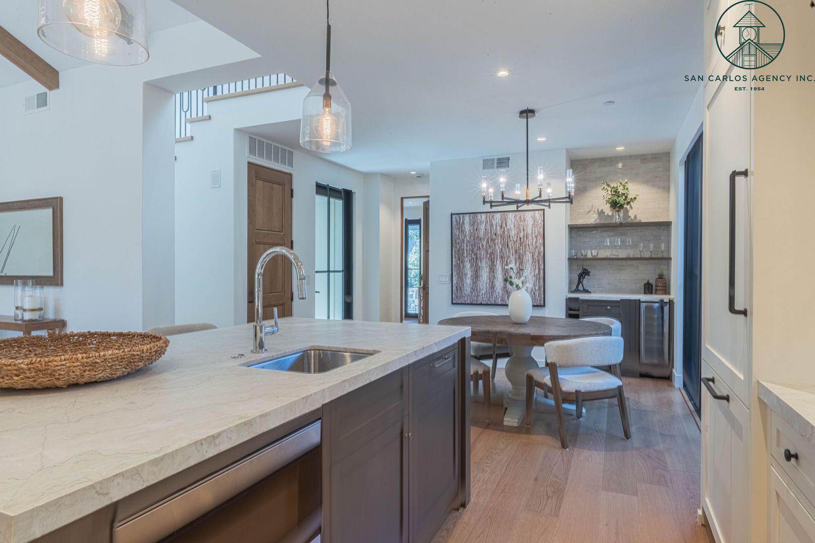 (TURNJ) San Carlos Agency, Inc. offers this exclusive and incredible unfurnished rental opportunity on the edge of the Golden Rectangle - this brand new three bedroom build combines both timeless craftsmanship with modern design. Situated on a quiet stretch of Mission Street, the home offers tranquility, convenience, walkability to both downtown and Carmel Beach, and top of the line finishes throughout. The two-story layout includes floor-to-ceiling windows, wide-plank oak floors, a luxurious primary suite on the ground level, quartzite finishes, eight-foot alder doors, and an open, airy design that combines comfort and elegance. Enjoy seamless living amongst the combined kitchen/living/dining with high ceilings and a gas log fireplace insert with beautiful Carmel stone surround. The kitchen offers new stainless steel and wood paneled appliances (gas range with vent hood, refrigerator with bottom freezer, dishwasher, under-counter microwave), multiple sinks, custom recessed cabinetry, eat-in island, and gorgeous quartzite counters. Take in beautiful peek views of the Mal Paso hills and Carmel's historic water tower from the upstairs bedrooms, which share a full bath (shower/tub combo). Other highlights include a spacious attached garage (additional off-street parking in driveway), forced air heating with a dual-zone furnace, copper gutters and downspouts, and handcrafted alder doors. Brand new stackable washer/dryer unit in laundry closet and left as a courtesy to tenant. Tenant pays all standard utilities except Landlord will pay for a gardening service. Available unfurnished only. Pet negotiable. No smoking. Landlord will require Tenant obtain a Renter's Insurance policy. Contact San Carlos Agency, Inc. at (831) 624-3901 or rentals@sancarlosagency.com to schedule a showing. Visit www.SanCarlosAgency.com or www.CarmelRentalProperties.com.