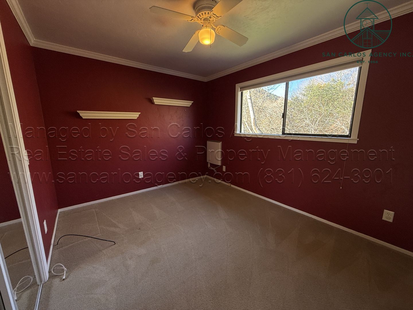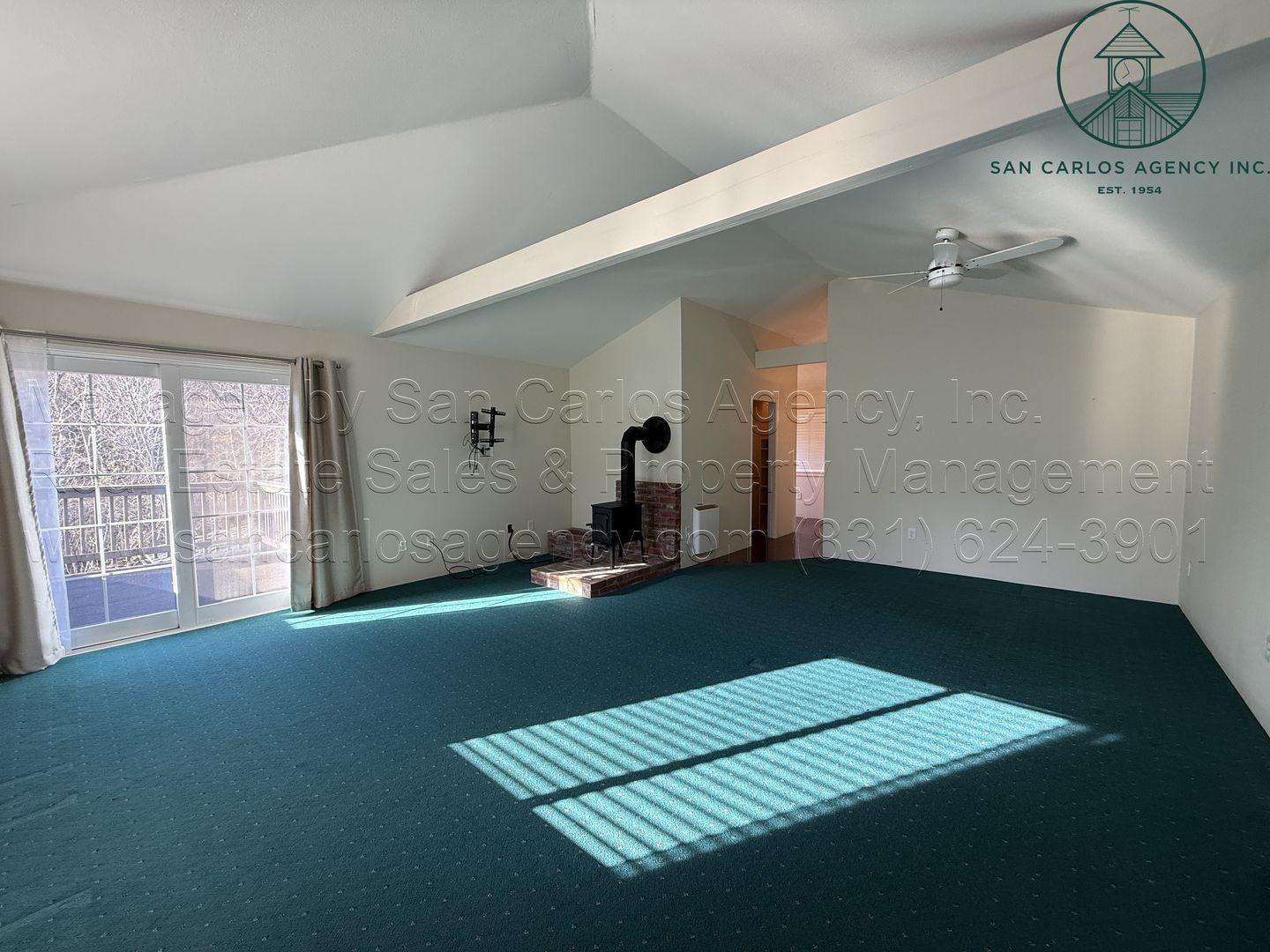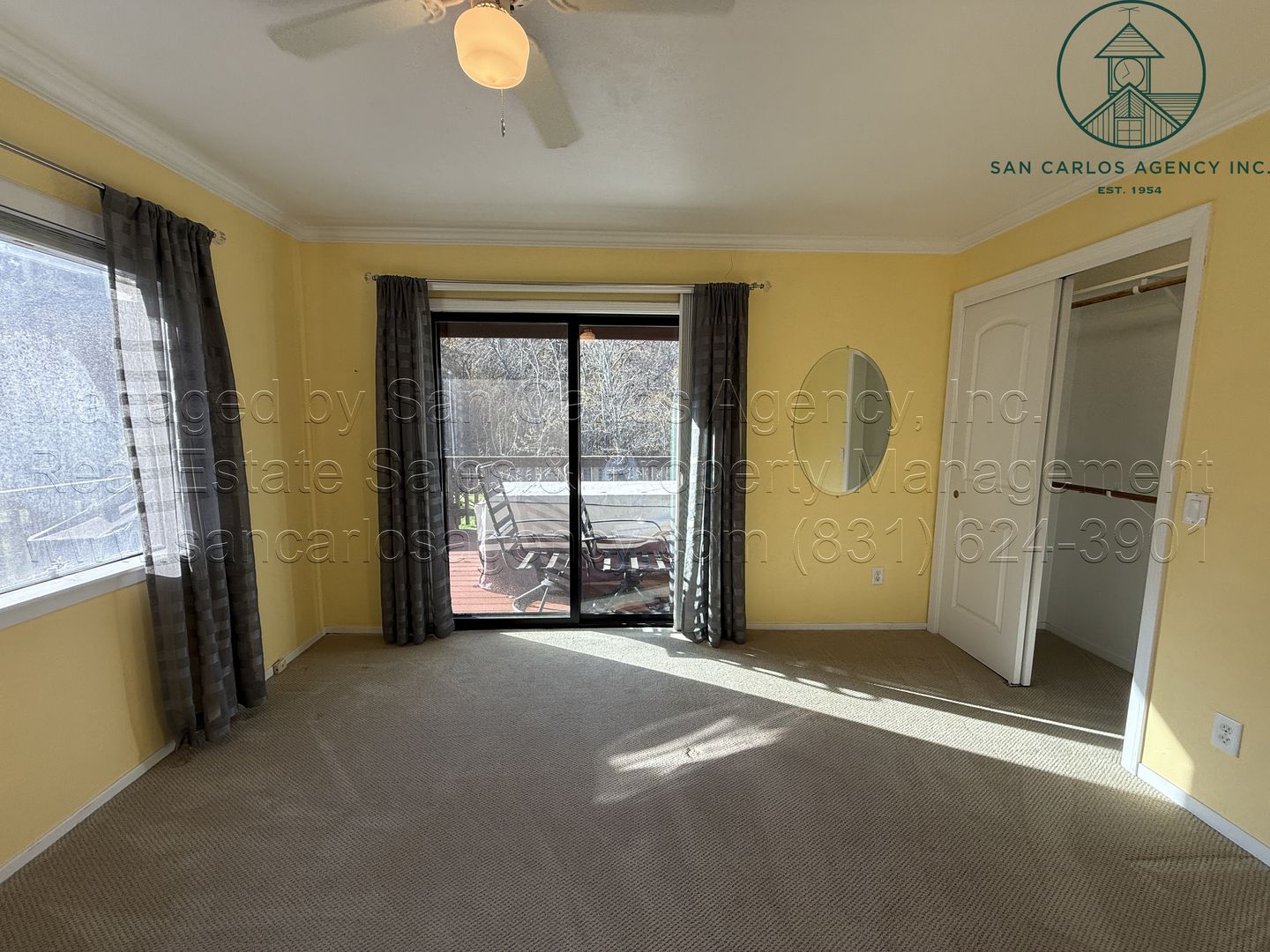 (WOMAM) San Carlos Agency, Inc. presents this sunny, private, three bedroom, two bath home located on a large, quiet lot in the heart of Carmel Valley situated along the serene Carmel River and adjacent to Garland Park. The carpeted living room features a stove fireplace and exits to the two guest bedrooms and bath (walk-in shower). The kitchen is off the entry and features a refrigerator (bottom freezer), electric cooktop, under counter single oven, dishwasher, built-in microwave, and trash compactor. An island separates the kitchen from the adjacent dining area. The primary suite is the entire upstairs with large tiled bath (separate tub/shower), spacious bedroom exits to a private deck with excellent valley and river views. The property features a large deck out the back with a fenced yard and spacious and private grounds with no neighbors in sight. The double car garage has plenty of additional room for storage. Laundry area off the kitchen with an abundance of cabinetry/storage and side by side washer/dryer units left as a courtesy to tenant. All utilities will be tenant responsibility except landlord will provide a limited gardening service as needed. Pets negotiable. No smoking. Contact San Carlos Agency, Inc. at (831) 624-3901 or rentals@sancarlosagency.com to schedule a showing. Visit www.SanCarlosAgency.com or www.CarmelRentalProperties.com.