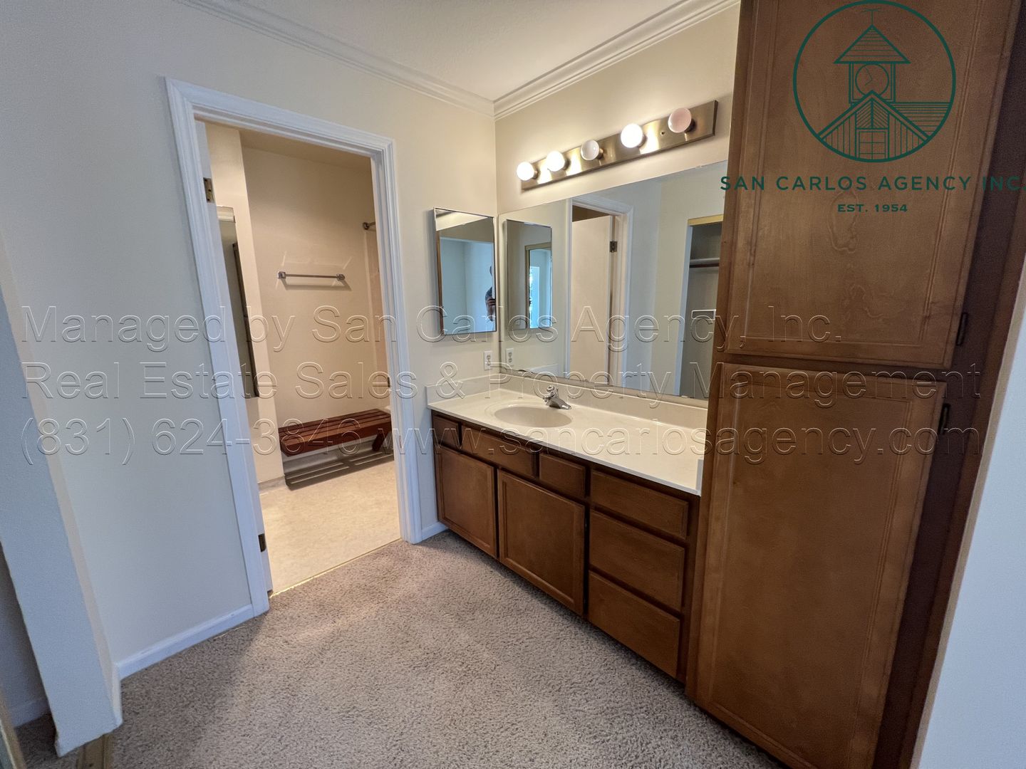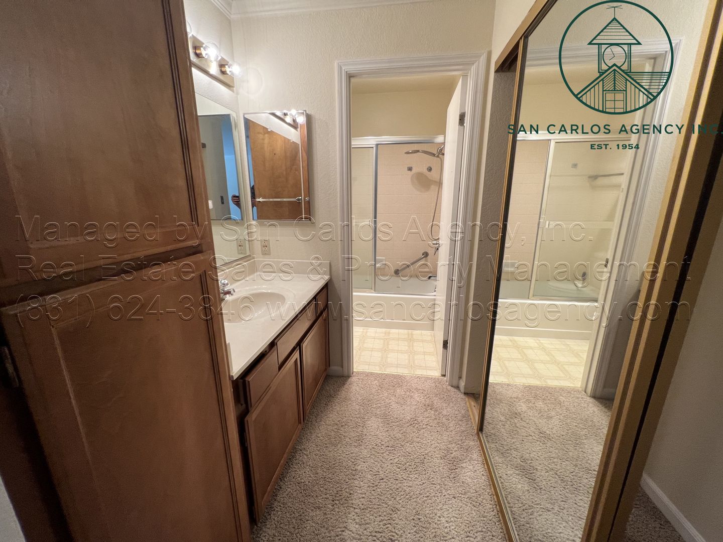 (MARTS) San Carlos Agency, Inc. offers this two bedroom, two and one-half bath condominium located inside "The Glen" gated community. With a half bath off the entry, the home features an "L" shaped living/dining room combination with laminate wood floors, gas-log fireplace and door that opens to a patio/deck area. A small stream runs behind the patio area for a peaceful and attractive backyard. The kitchen offers a service bar, tile counters, refrigerator, electric range, dishwasher, and microwave. Door from kitchen leads to a double car garage with washer/dryer hook-ups. Upstairs are two large bedrooms, both with en-suite baths and tub/shower combination. Complex amenities include scenic lake area and tennis courts. Short walk to Pacific Grove shops and restaurants. No smoking. Pet negotiable. Contact San Carlos Agency, Inc. at (831) 624-3901 or rentals@sancarlosagency.com to schedule a showing. Visit www.SanCarlosAgency.com or www.CarmelRentalProperties.com.
