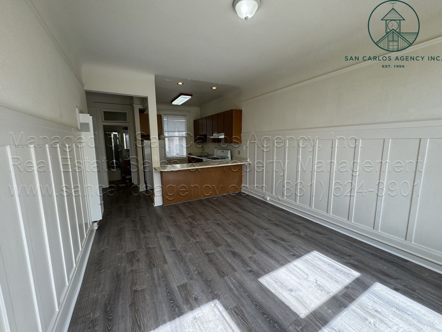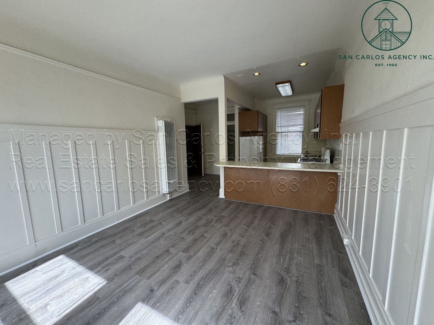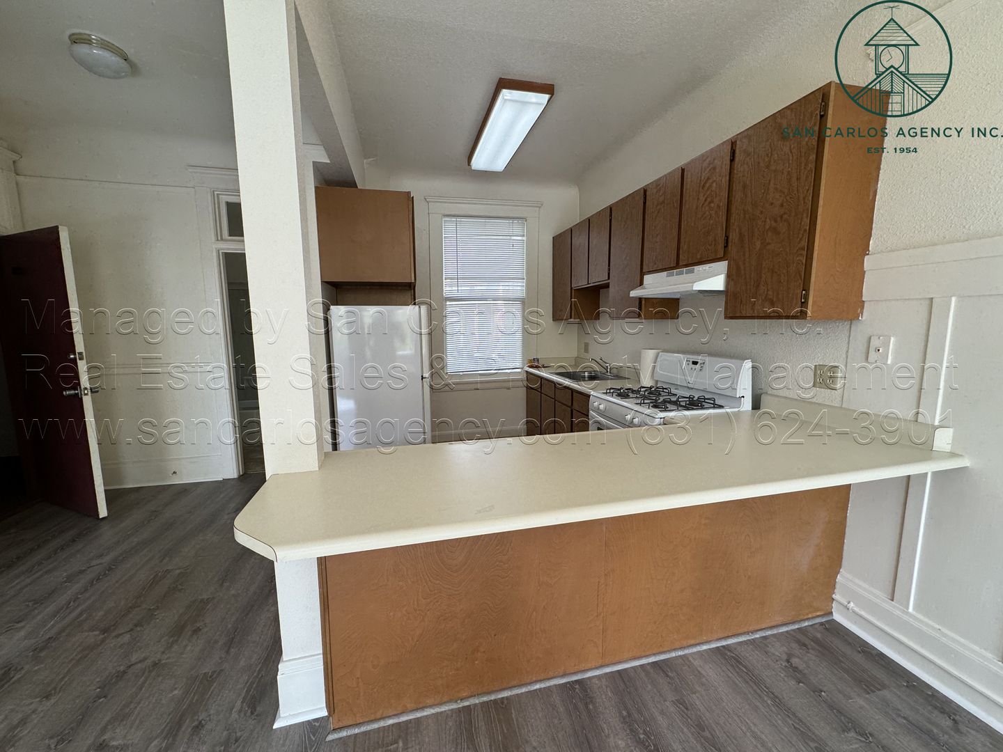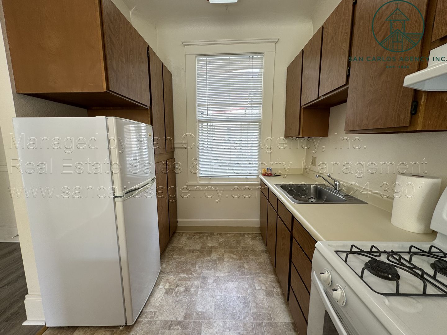 (SING-23) San Carlos Agency, Inc. offers this mostly original but nicely maintained and spacious one bedroom apartment in the heart of downtown Monterey. The second floor, end unit features high ceilings, new laminate flooring, large windows for an abundance of natural light, a full bath with tub/shower, and a sizeable closet. The kitchen is mostly original but offers an abundance of cabinetry, a large sink, refrigerator, gas range with vent hood, and an eat-in counter adjacent to the large living area. Heat is from a single wall gas unit. The building has an elevator, communal coin-op washer/dryers, and outside bike storage area. Street parking only. Water, garbage and sewer is included in rent and paid by the Landlord. Tenant pays PG&E and telephone/internet of their choosing. No pets. No smoking. Contact San Carlos Agency, Inc. at (831) 624-3901 or rentals@sancarlosagency.com to schedule a showing. Visit www.SanCarlosAgency.com or www.CarmelRentalProperties.com.
