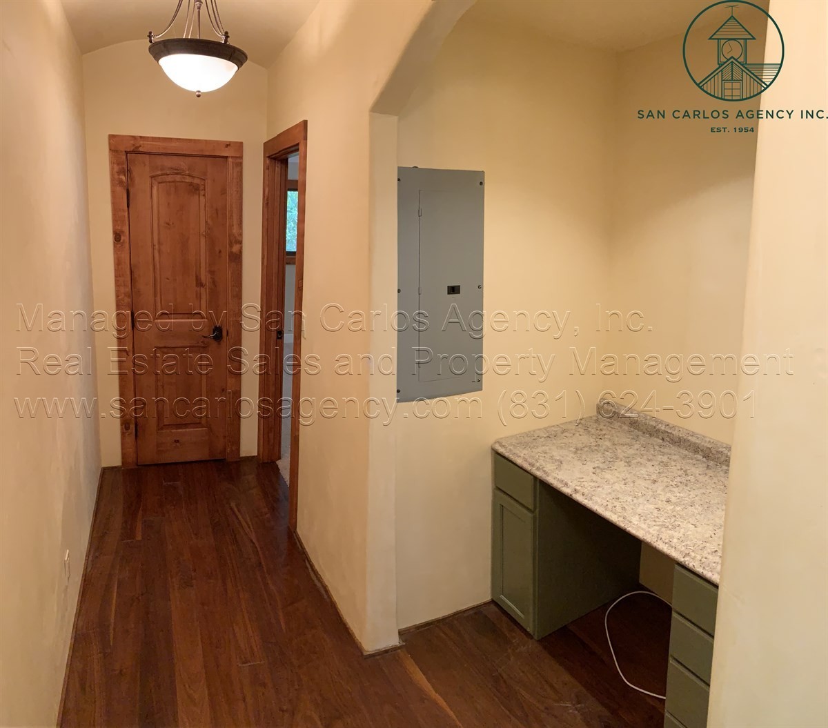 (BOERM) San Carlos Agency, Inc. presents this spacious three bedroom, three bath home located on a large, quiet lot in the heart of Carmel Valley off Garzas Road. The living room features newer laminate floors and high, open-beam ceilings with a gas assist wood burning fireplace, bar area and adjacent dining and family room also with new flooring and second fireplace. Both living and dining/family areas exit via large doors to expansive wood deck with huge, landscaped backyard that extends all the way to Carmel River. The kitchen features newer, stainless steel appliances (refrigerator with ice maker, gas range, double gas wall oven, dishwasher, and disposal), tile counters, and tons of cabinet space. The primary bedroom has walnut floors and large en suite bath with double sinks, shower, jetted tub, and walk-in closet with built-in shelving. The other bedrooms are carpeted and share a partially updated bath. The laundry room has hook-ups only and is off the spacious, attached two car garage. Large additional building on the lower end of lot with additional storage and carport. Additional amenities include a new HVAC system, 220V Tesla charger installed in the garage, new carpet in guest bedroom, and Wifi repeaters installed throughout home. All utilities will be tenant responsibility except landlord will provide a gardening and regular rodent mitigation service. No smoking. Pets considered. Contact San Carlos Agency, Inc. at (831) 624-3901 or rentals@sancarlosagency.com to schedule a showing. Visit www.SanCarlosAgency.com or www.CarmelRentalProperties.com.