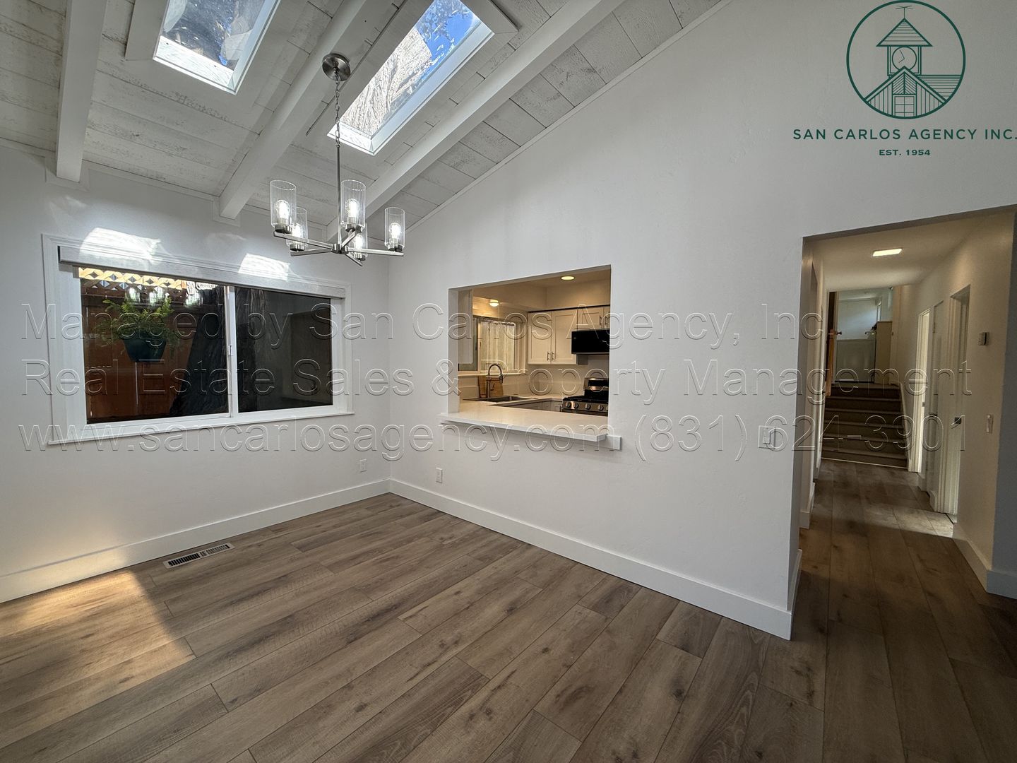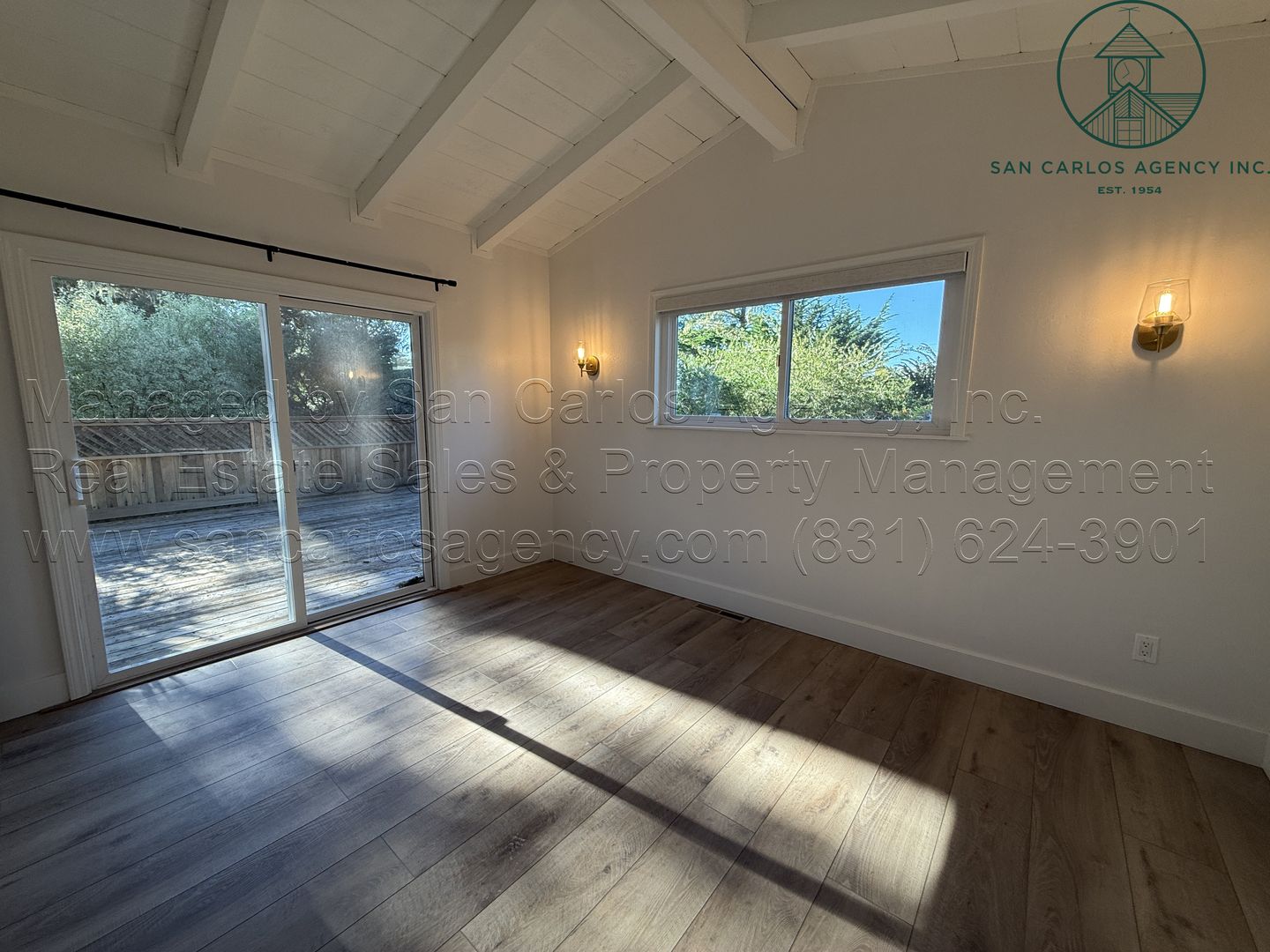 (CARLM I/O) San Carlos Agency, Inc. offers this nicely maintained and recently remodeled three bedroom, two bath mostly single-level and charming single family home in a]n incredibly convenient Carmel-by-the-Sea location just a few blocks to downtown. Available unfurnished with a one year lease, the approximately 1,700 square-foot home features tons of natural light from many skylights, new flooring, paint, remodeled bathrooms, among many other improvements just recently completed. The brand new kitchen offers new stainless steel appliances (refrigerator with bottom freezer, gas range with microwave vent hood, and dishwasher), an abundance of cabinetry, and a pass through to the dining/living room combination. The open beam ceiling living/dining area exits to the large sun deck with a peak of Carmel Bay views. The primary bed is also off the living room and features a new en-suite bath (walk-in shower) and also exits to the large outside deck area. The two guest rooms are off the hall and share a second newly remodeled bath (tub/shower). The attached garage has been converted to a bonus area, which also has the washer/dryer units (left as a courtesy to tenant). There is plenty of street parking in addition to off-street parking in the driveway. Tenant is responsible for all utilities except sewer and the gardener. Pet negotiable. No smoking. Contact San Carlos Agency, Inc. at (831) 624-3901 or rentals@sancarlosagency.com to schedule a showing. Visit www.SanCarlosAgency.com or www.CarmelRentalProperties.com.