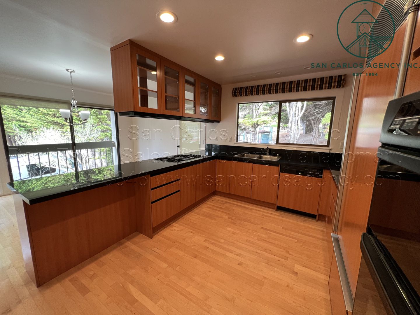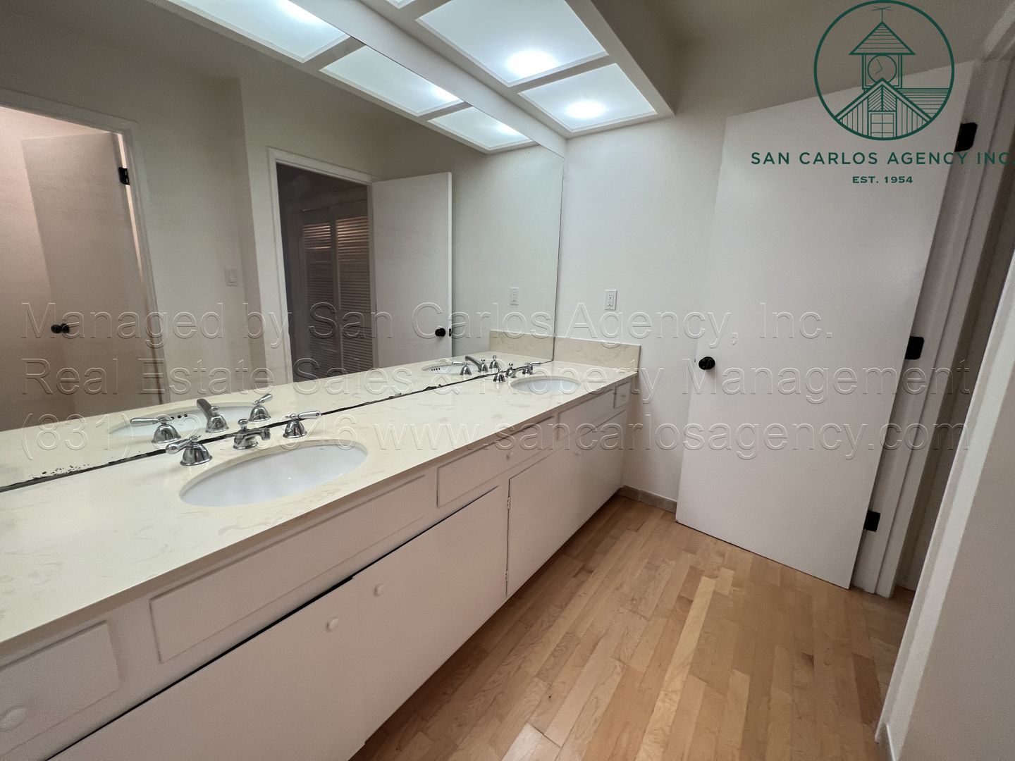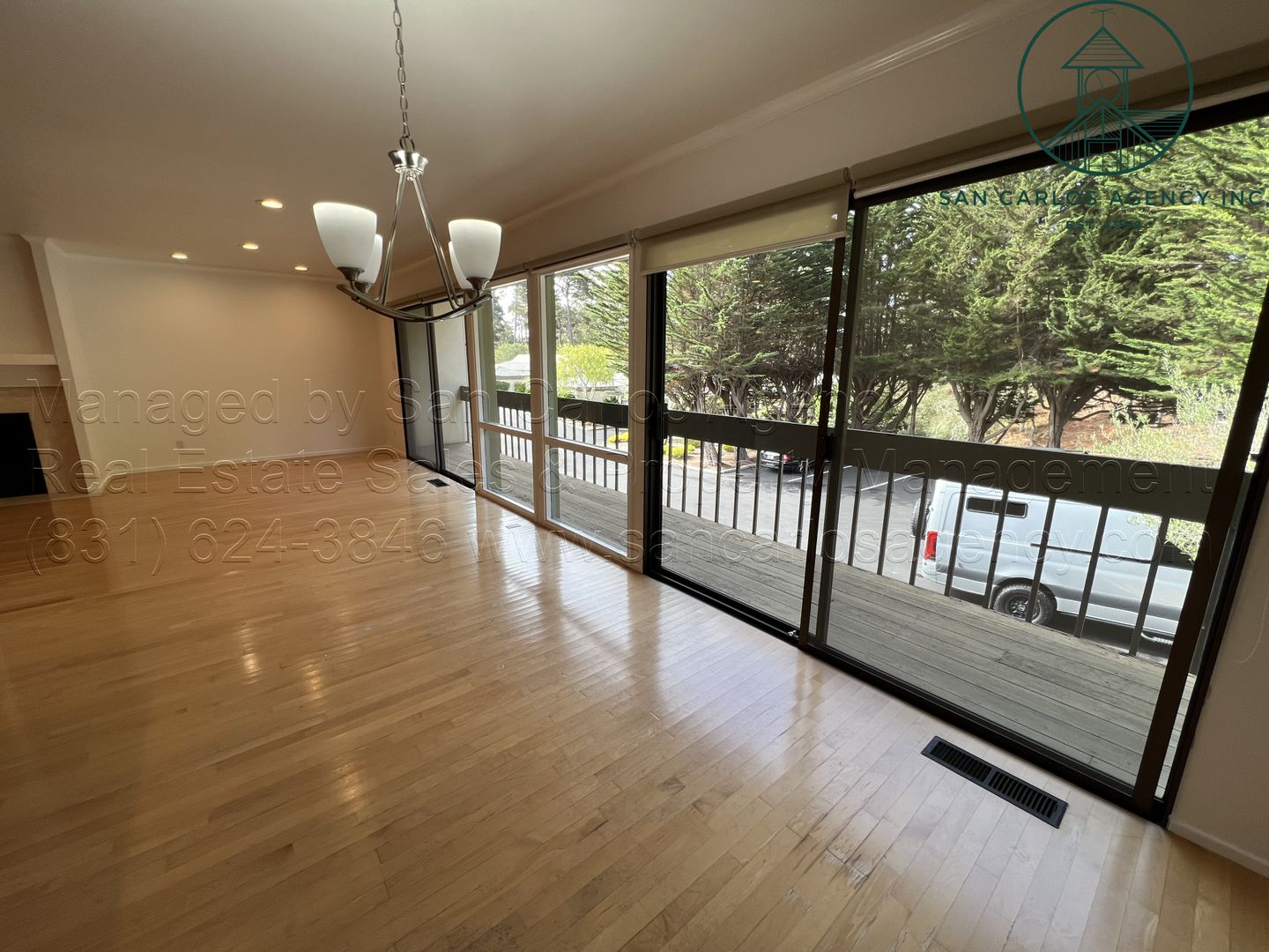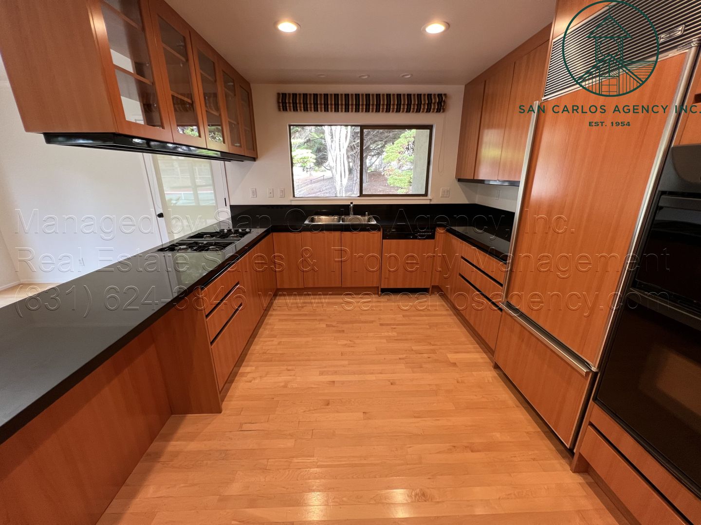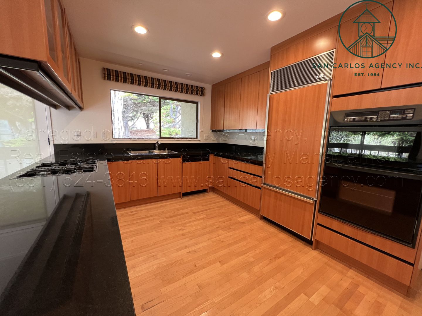 (HAGGM I/O) San Carlos Agency, Inc. offers this wonderfully maintained and spacious three bedroom, three bath end unit condominium in the much sought after High Meadows complex. Over 2,000 square feet, the unit has maple wood flooring throughout the main level (except the baths). The living room has a wet bar, wood burning fireplace and adjacent dining area with a westerly facing balcony deck. The large kitchen has an abundance of cabinetry and granite counter space, refrigerator with bottom freezer, gas oven with built-in microwave combination, gas cook-top, dishwasher, and double sink with disposal. The primary is on the main level and features a balcony deck, double closets, en suite bath with double sinks, separate shower and tub. The guest room on the main level and the carpeted third bedroom downstairs also feature en suite bath with walk-in showers. The clothes washer and dryer (left as a courtesy to tenant) are located in the basement, which offers an additional storage area to boot. There is gated pool access on property. Parking in an attached double car garage. Unit features a tankless hot water heater for higher efficiency. Pet negotiable. No smoking. Contact San Carlos Agency, Inc. at (831) 624-3901 or rentals@sancarlosagency.com to schedule a showing. Visit www.SanCarlosAgency.com or www.CarmelRentalProperties.com.
